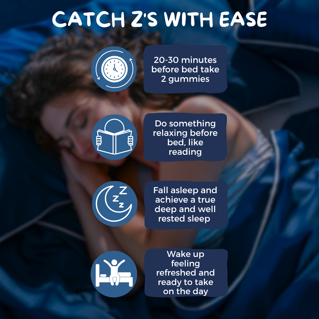 For a restful night, simply take one gummy within 30 minutes of bedtime